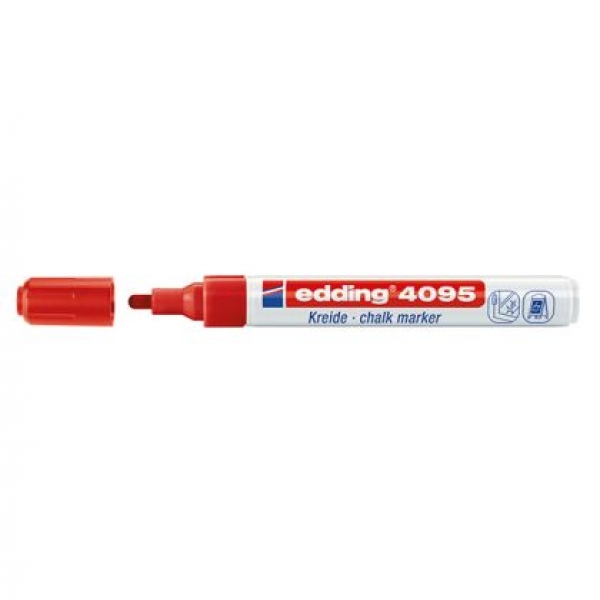 Тебеширен маркер за стъкло, бели и черни дъски Edding 4095 Объл връх 2-3 mm Червен