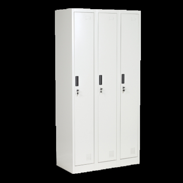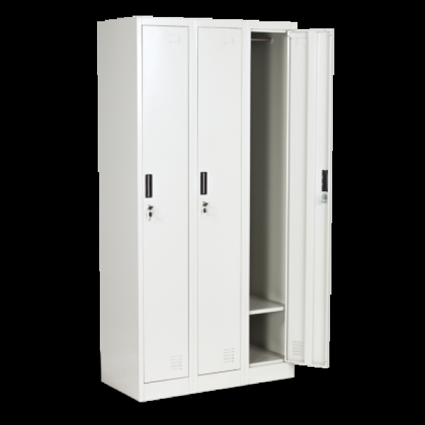 Метален шкаф за съблекалня CR-1242 J от серията метални шкафове на Carmen разполага с три метални врати, три рафта и възможност за заключване. Системата от метални мебели на Carmen включва офис контейнери, метални гардероби за съблекалня, метални контейнери, метални шкафове за документи, кардекс и други. Пълна информация за размерите и характеристиките на модела ще намерите в таблицата в таб/поле "Техническа информация".
