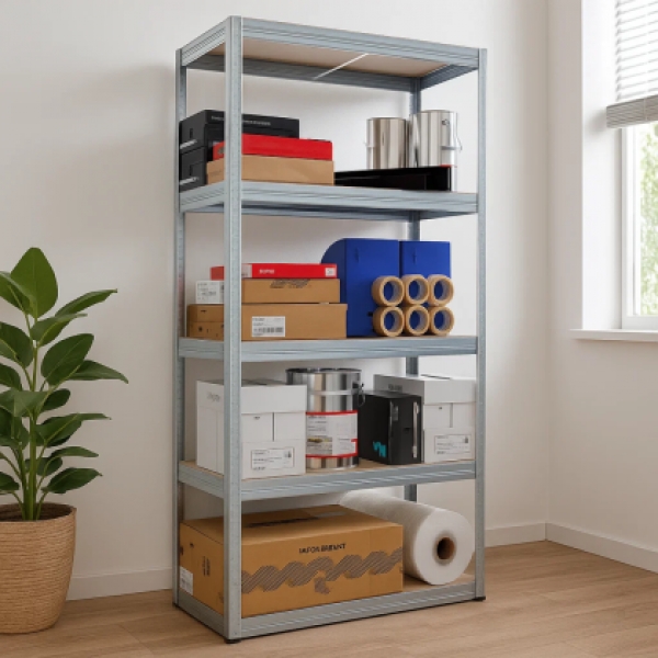 STAR е метален стелаж с универсално приложение, който ще ви помогне да подредите работното място, гаража или килера у дома. Той има 5 МДФ рафта с размери 75x35 см, а цялата му височина е 180 см. Височината на рафтовете може да бъде регулирана и променяна лесно благодарение на безболтовия монтаж, а всеки от тях може да издържи натоварване до 175 кг. Пълна информация за размерите и характеристиките на модела ще намерите в таблицата в таб/поле "Техническа информация".
