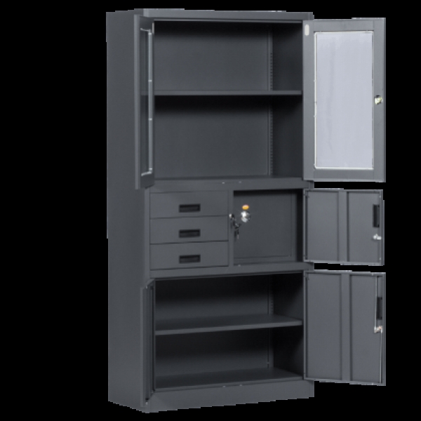 Металният шкаф за документи Carmen CR-1240 E SAND е практичен модел с удобно разпределение от два шкафа, 3 чекмеджета и 1 сейф. Всички отделения могат да се заключват. Шкафовете са с един рафт с регулируема височина и товароносимост до 40 кг. Пълна информация за размерите и характеристиките на модела ще намерите в таблицата в таб/поле "Техническа информация".