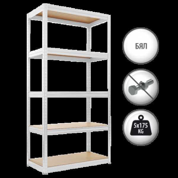 Метален стелаж STAR 180х90х45 см, до 175 кг на рафт - бял