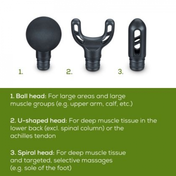 Масажор Beurer MG 89 MASSAGE GUN CompactPower, Quiet, lightweight & handy deep tissue massager, 5 intensity levels, 3 massage attachments, Up to 4h battery life with LED display