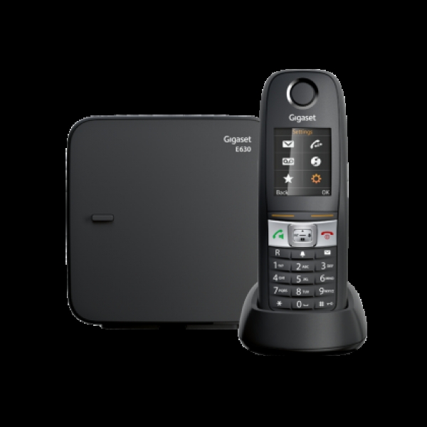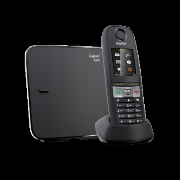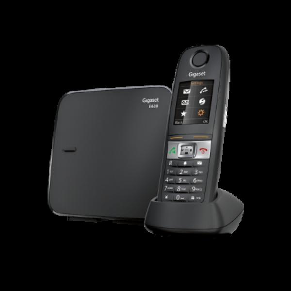 Безжичен DECT телефон Gigaset Е 630 притежава цветен, 1.8 TFT дисплей, 6 реда и 65 хиляди цвята; Влаго и прахоустойчив - IP65 стандарт.