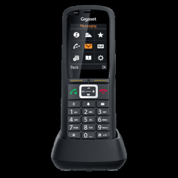DECT слушалка Gigaset R700H PRO разполага с 6-редов цветен, 2.4’’ TFT дисплей и батерии, издържащи до 320 часа в режим на готовност и 14 часа в режим на разговор.
