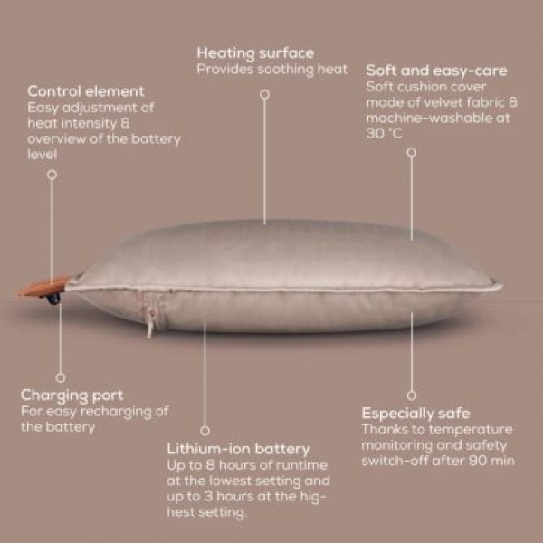 Термоподложка Beurer HK 77 Heaty smokey-taupe;lithium-ion battery; Soft velvet cushion cover machine-washable at 30°C; 3 temperature settings; Fast heating; BSS; 45(L)x45(W) cm