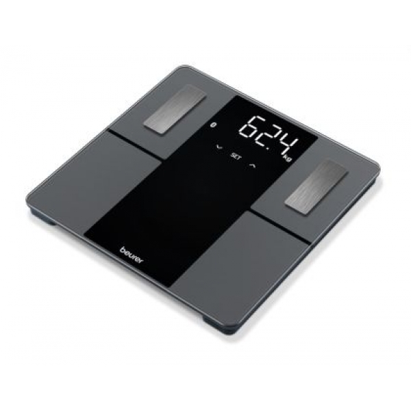 Везна Beurer BF 500 BT diagnostic bathroom scale in black, titanium-coated stainless steel electrodes, extra-large magic display 40mm, Weight, body fat, body water, muscle percentage, bone mass, AMR/BMR calorie display; BMI calculation; Bluetooth; 180 kg