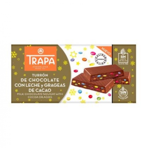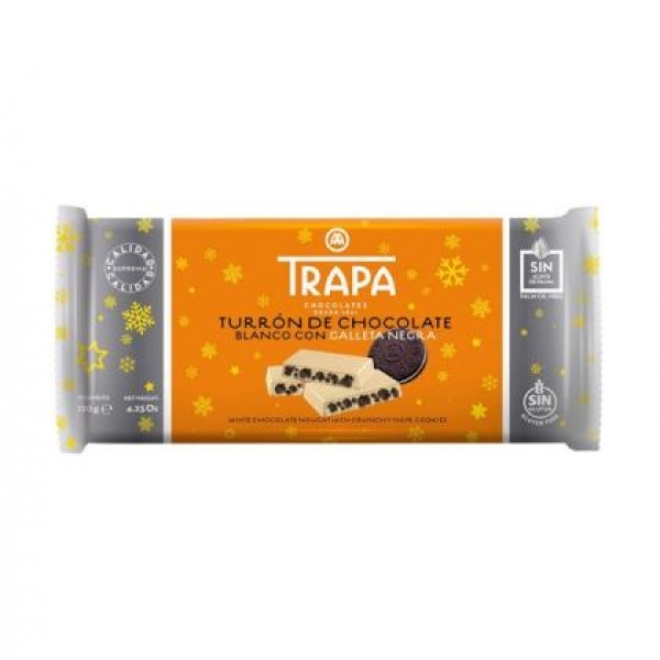 Шоколад Trapa "Турон", без захар, млечен, крисп, 110 гр.   Съставки: подсладител (малтитол, стевиол гликозид (0,02%)), какаово масло, пълномаслено мляко на прах, екструдиран ориз (оризово брашно, царевично брашно, сол) (10%), какаова паста, лешникова паста, масло, емулгатор (соев лецитин), ароматиза...