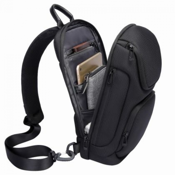 Чанта за през рамо BANGE Crossbody DX в модерно черно - удобна и функционална. Универсална чанта за ежедневна употреба /училище, къмпинг, туризъм, пътуване, планинарство, екскурзии през уикенда, колоездене/.