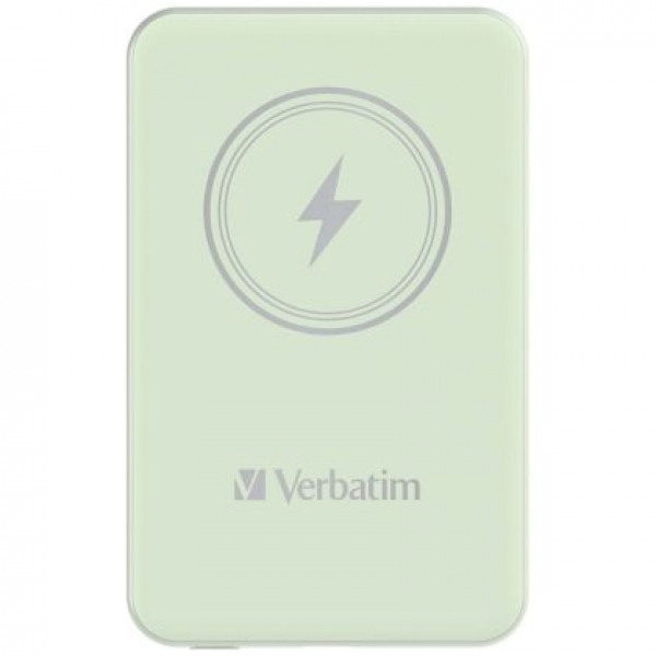 Външна батерия Verbatim MCP-5GN Power Pack 5000 mAh with UBS-C PD 20W / Magnetic Wireless Charging 15W Green