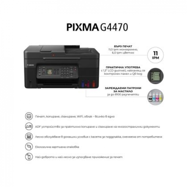 Мастилоструйно многофункционално устройство Canon PIXMA G4470 All-In-One, Black