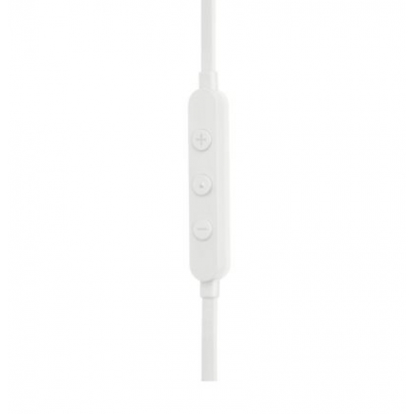The three-button remote on a tangle-free flat cable lets you control music playback and volume adjustment.