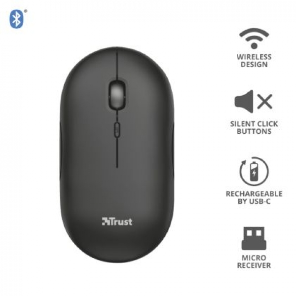 Мишка TRUST Puck Wireless & BT Rechargeable Mouse Black