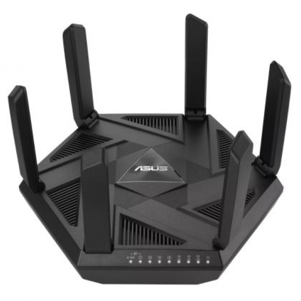 Рутер Asus Gaming Wireless Router, RT-AXE7800, AXE7800, Tri-Band, Quad-Core 1.7GHz CPU, 256MB/512MB Flash/RAM, 2.5G port, AiProtection Pro, Adaptive QoS, VPN Fusion, Instant Guard, IPTV, OFDMA, MU-MIMO, Beamforming, Link Aggregation, AiMesh, Black