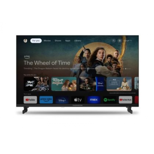 Телевизор Thomson Smart FHD TV 32"; Google TV; 1920 x 1080 (FHD), DLED, 60 Hz, DVB-T/T2/C/S/S2, Wi-Fi, Bluetooth, LAN, HDMI 3 (1.4), USB 2 (2.0), 12 Volt adapter included, Side Feet, Black