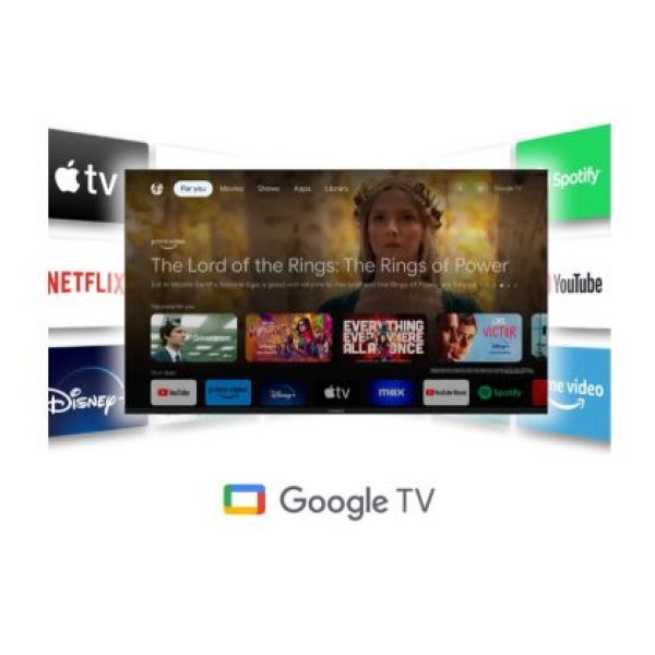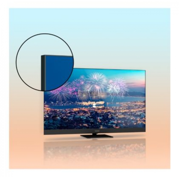 Телевизор Thomson Smart QLED Plus TV 65"; Google TV; 3840 x 2160 (4K UHD), QLED, 4000:1, 60 Hz, DVB-T/T2/C/S/S2, HDR10, Wi-Fi, Bluetooth, LAN, HDMI 2 (2.0) + 2 (2.1), USB 2 (2.0) + 1 (3.0),Built-in Front Speakers, Central Swivel Stand, Black