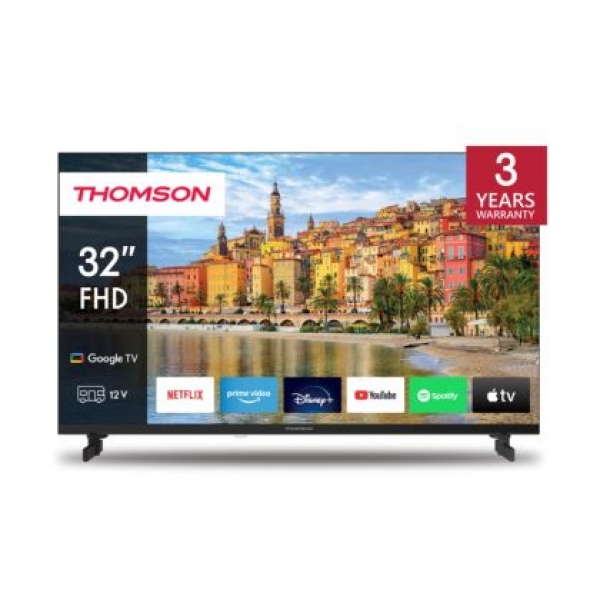 Телевизор Thomson Smart FHD TV 32"; Google TV; 1920 x 1080 (FHD), DLED, 60 Hz, DVB-T/T2/C/S/S2, Wi-Fi, Bluetooth, LAN, HDMI 3 (1.4), USB 2 (2.0), 12 Volt adapter included, Side Feet, Black