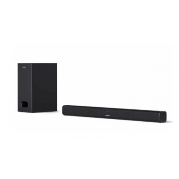Аудио система Sharp Soundbar HT-SBW110, SLIM 180W 2.1 Wired Subwoofer, HDMI & BLUETOOTH, wireless music streaming, HDMI ARC/CEC, 3.5mm Aux-in, Digital Optical Audio Input, Matt black