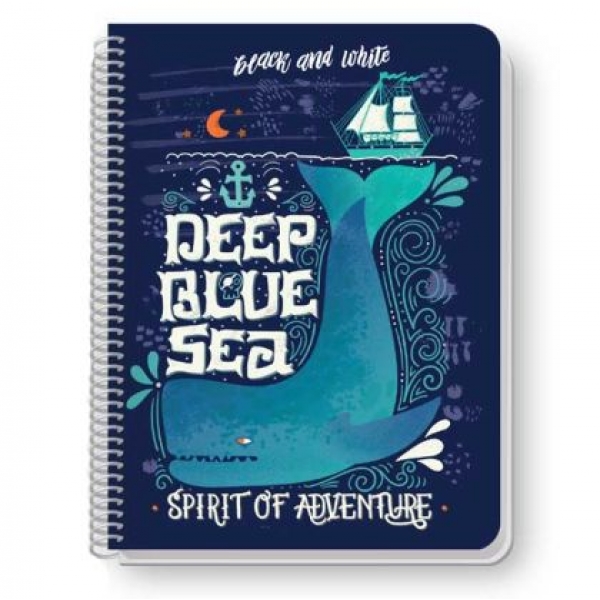 Тетрадка Black&White Colorful Mix Ламинирани корици, спирала, офсет, 2 теми, А4 80 л. с редове