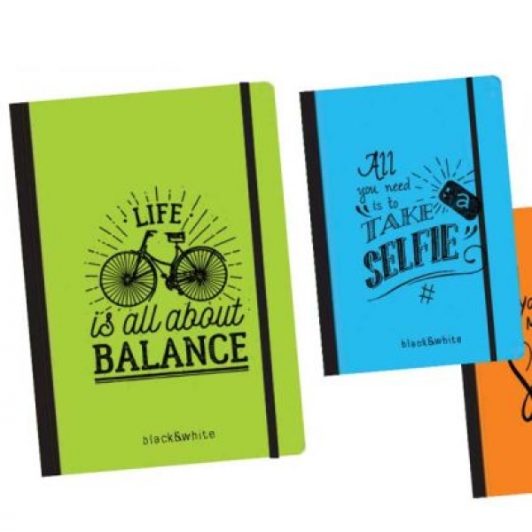 Тетрадка Black&White Flexy Colors Mix Flexy корица, шита и лепена, с ластик, офсет, A5 96 л. с редове