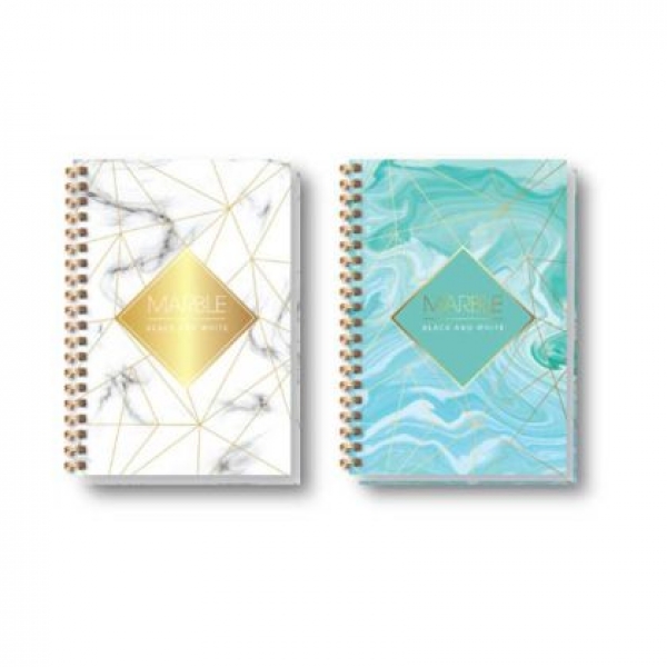 Тетрадка Black&White Marble Ламинирани корици, спирала, офсет, 4 теми, А4 160 л. с редове