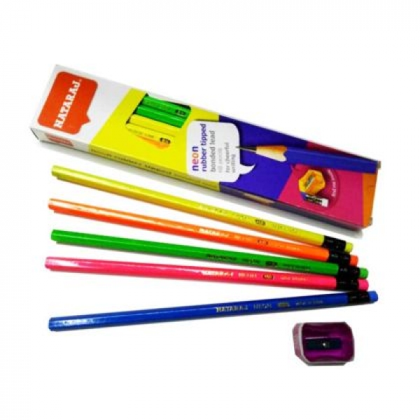 Цветни моливи Nataraj NEON С гума, 12 цвята, HB