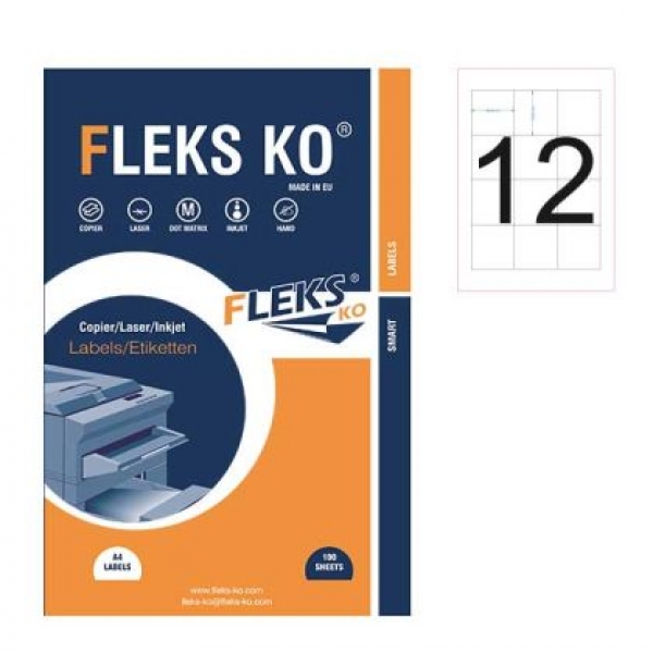 Етикети Fleks Ko Бели, прави ъгли, 58x60 mm A4, 100 л. 12 етик./лист