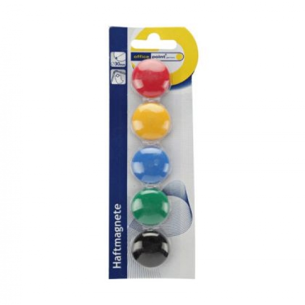 Магнити Office Point Ф30 mm 5 бр. в блистер, Цветен микс