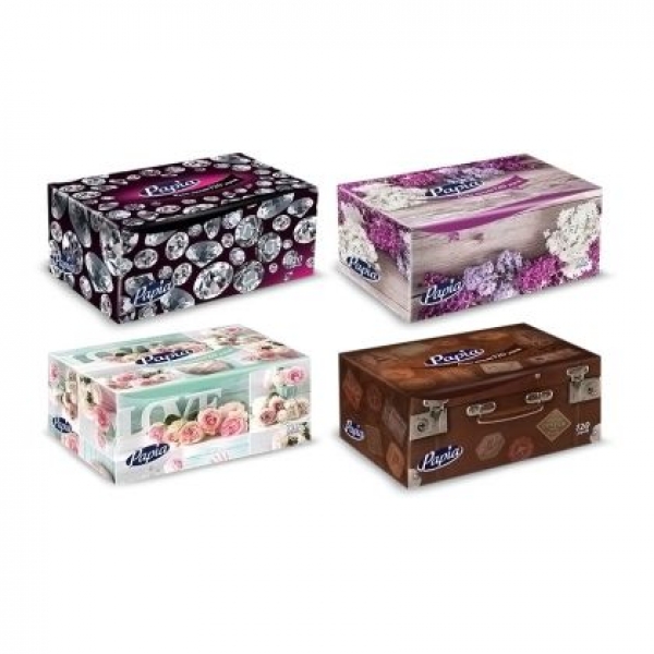 Козметични кърпи Papia 100% целулоза, двупластови 120 бр. в кутия Бели