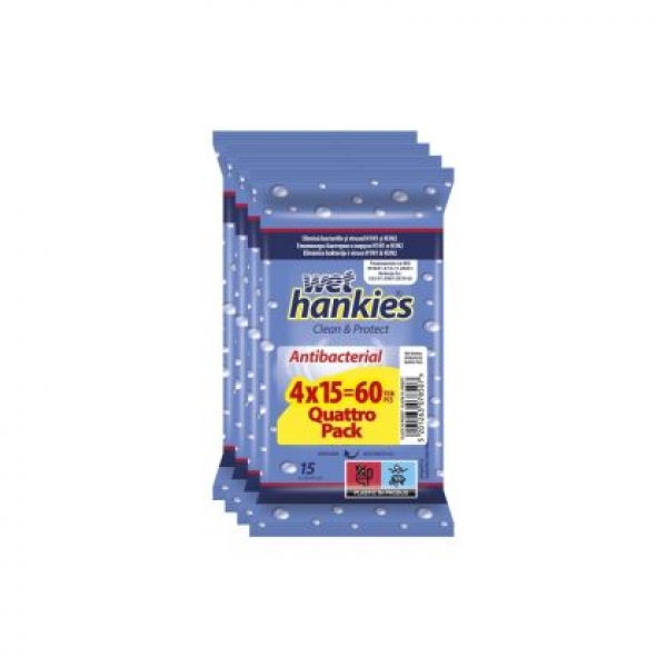 Мокри кърпи Wet Hankies Почистващи и ароматизиращи, 4x15 бр. в плик