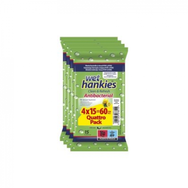 Мокри кърпи Wet Hankies Почистващи и ароматизиращи, 4x15 бр. в плик