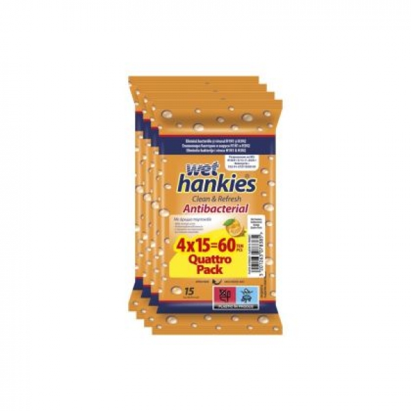 Мокри кърпи Wet Hankies Почистващи и ароматизиращи, 4x15 бр. в плик
