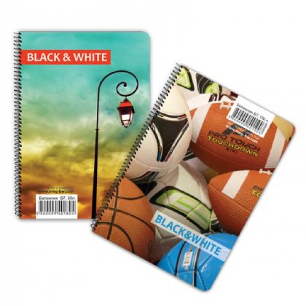 Бележник Black&White Mix Меки корици, спирала, B7 50 л. с редове
