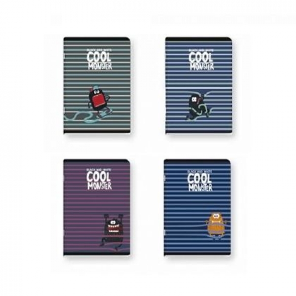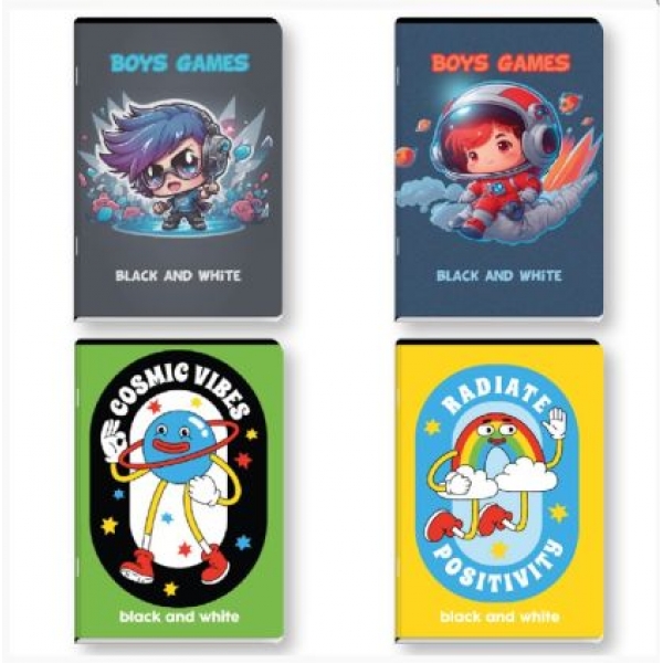 Тетрадка Black&White Boy Mix Меки корици, А5 24 л. с малки квадратчета