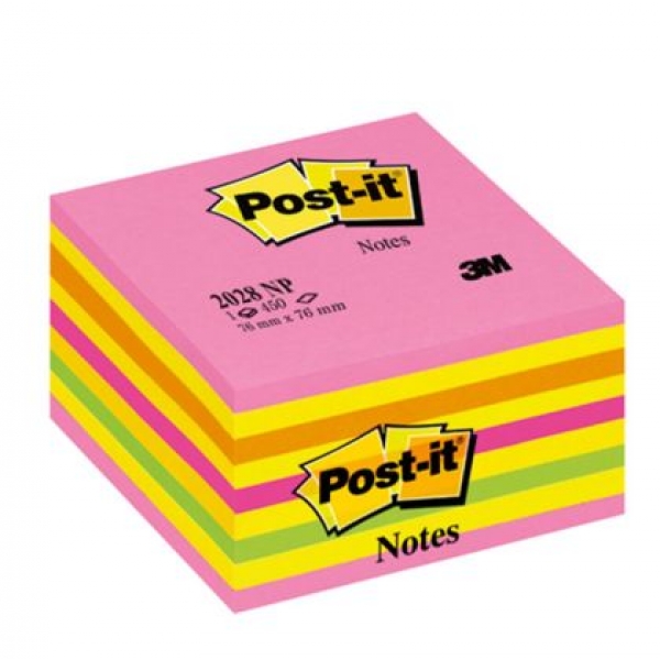 Самозалепващи листчета 3M 2028NP 76x76 mm, 450 л. Розов неон микс