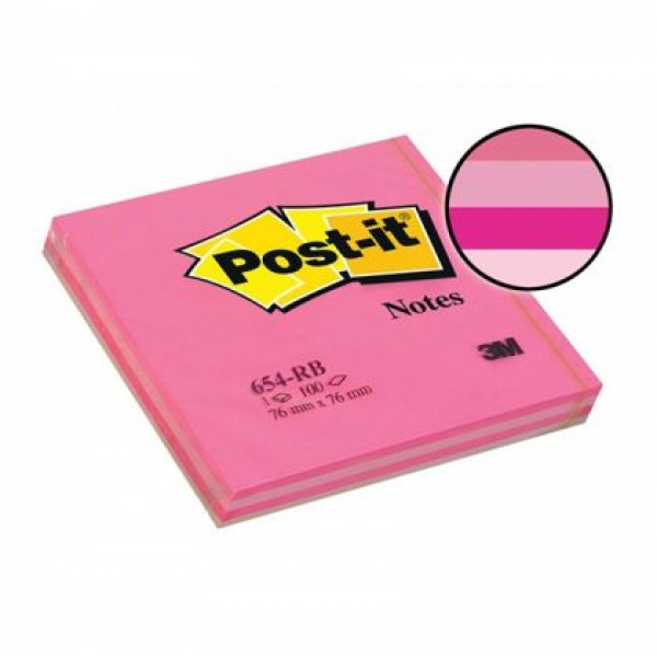 Самозалепващи листчета 3M Post-it 654 Retro Bright 76х76 mm, 100 л. Розов микс