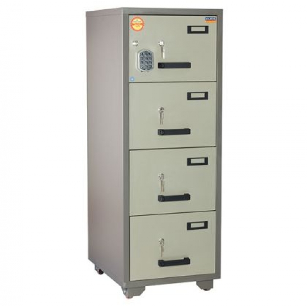 Огнеупорен шкаф за висящи папки Практик FC4E Единичен с 4 чекмеджета, 54.5x65.3x150 cm, Сив