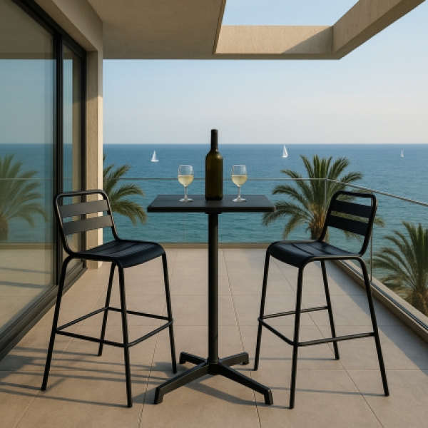 Сгъваема кетъринг бар маса LAFIA D70 е стилна и практична маса с квадратен плот, подходяща за барове на открито, тераси, събития и кетъринг. Конструкцията е изработена от метал с антикорозионно покритие, което осигурява устойчивост при външна употреба. Плотът се сгъва лесно за удобно пренасяне и ком... →