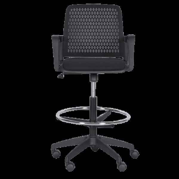 Работен офис стол Carmen 7556 комбинира функционалност и комфорт. Благодарение на регулируемата си височина и хромирана степенка тип ринг, той може да се използва както като обикновен офис стол, така и като висок работен стол. Степенката осигурява удобна опора за краката и предпазва от неприятното усещане за „висящи“ крака при по-висока позиция на седалката. Седалката е тапицирана с дамаска, а облегалката е изработена от полипропилен с мрежеста структура за по-добра вентилация и циркулация на въздуха. Пълна информация за размерите и характеристиките на модела ще намерите в таблицата в таб/поле 'Техническа информация'.