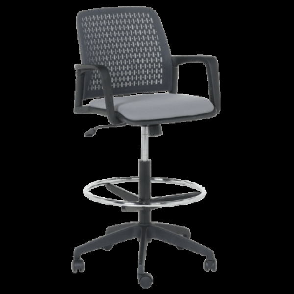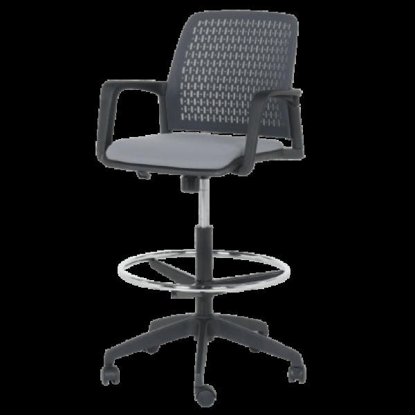 Работен офис стол Carmen 7556 комбинира функционалност и комфорт. Благодарение на регулируемата си височина и хромирана степенка тип ринг, той може да се използва както като обикновен офис стол, така и като висок работен стол. Степенката осигурява удобна опора за краката и предпазва от неприятното усещане за „висящи“ крака при по-висока позиция на седалката. Седалката е тапицирана с дамаска, а облегалката е изработена от полипропилен с мрежеста структура за по-добра вентилация и циркулация на въздуха. Пълна информация за размерите и характеристиките на модела ще намерите в таблицата в таб/поле 'Техническа информация'.