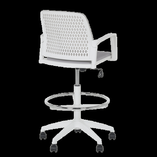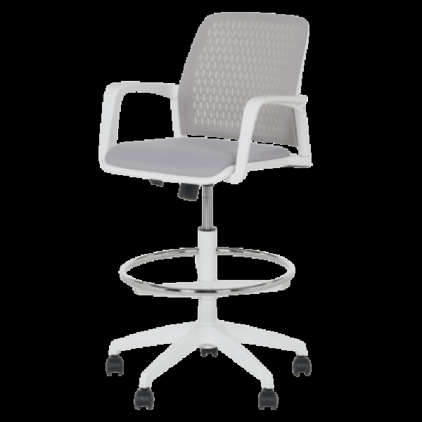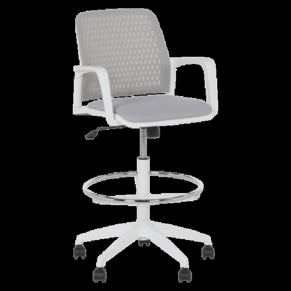 Работен офис стол Carmen 7556 W комбинира функционалност и комфорт. Благодарение на регулируемата си височина и хромирана степенка тип ринг, той може да се използва както като обикновен офис стол, така и като висок работен стол. Степенката осигурява удобна опора за краката и предпазва от неприятното усещане за „висящи“ крака при по-висока позиция на седалката. Седалката е тапицирана с дамаска, а облегалката е изработена от полипропилен с мрежеста структура за по-добра вентилация и циркулация на въздуха. Пълна информация за размерите и характеристиките на модела ще намерите в таблицата в таб/поле 'Техническа информация'.