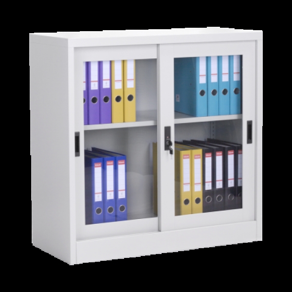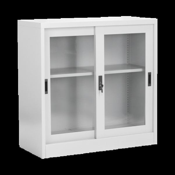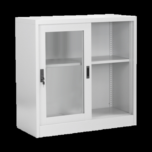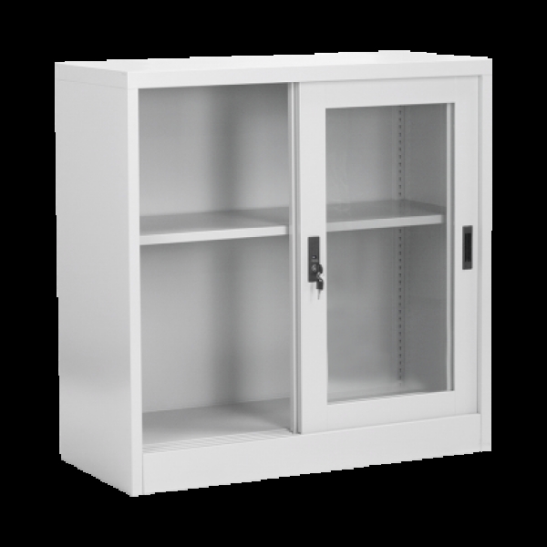 Метален шкаф CR-1264 J от серията метални шкафове на Carmen разполага с две плъзгащи метални врати със стъкло и рафт с регулируема височина. Системата от метални мебели на Carmen включва офис контейнери, метални гардероби за съблекалня, метални контейнери, метални шкафове за документи, кардекс и други. Пълна информация за размерите и характеристиките на модела ще намерите в таблицата в таб/поле "Техническа информация".