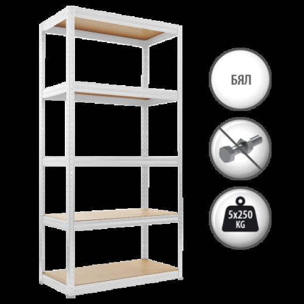 Метален стелаж STAR 180х90х35 см, до 250 кг на рафт - бял