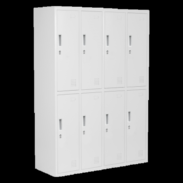 Металният шкаф Carmen CR-1276 K се състои от 8 отделения за съхранение на багаж. Моделът е изработен от праховобоядисан метал с гладко покритие. На вратите има вентилационен отвор и място за поставяне на етикет. Шкафчетата се затварят посредством заключващ механизъм с помощта на катинар. Катинарите не са включени в цената. Пълна информация за размерите и характеристиките на модела ще намерите в таблицата в таб/поле "Техническа информация".