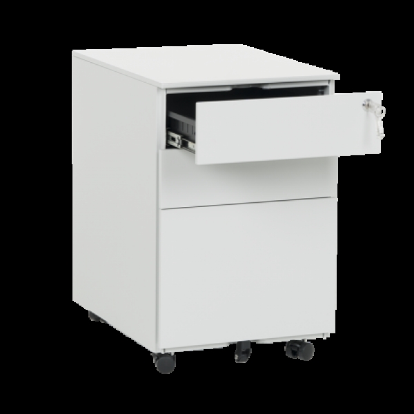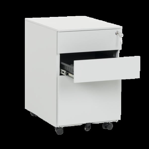 Офис контейнер Carmen CR-1806 K – практичен кардекс с 3 чекмеджета и централно заключване. След отключване всяко чекмедже се отваря самостоятелно, докато другите 2 са в затворено положение. Моделът е изработен от праховобоядисан метал с гладко покритие и пристига цял, без нужда от монтаж. В основата му има колела за лесно преместване. Пълна информация за размерите и характеристиките на модела ще намерите в таблицата в таб/поле "Техническа информация".