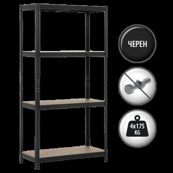 Метален стелаж Carmen CR-1015 - 180х90х40 см, до 175 кг на рафт - черен