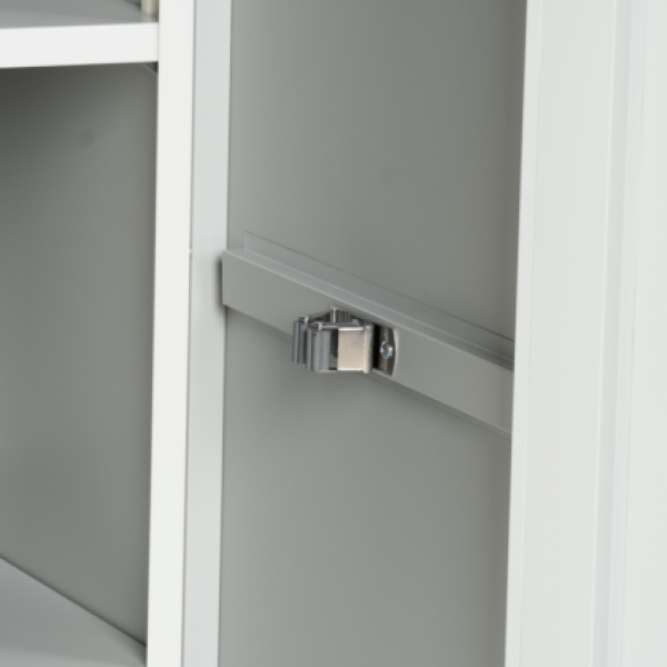 Металният санитарен шкаф Carmen CR-1284 E J е универсално решение за съхранение, подходящо за офиси, съблекални и санитарни помещения. Изработен от праховобоядисан метал със светлосиво покритие, той предлага три здрави рафта с товароносимост до 40 кг, лост за закачалки и два кукички за допълнително ... →