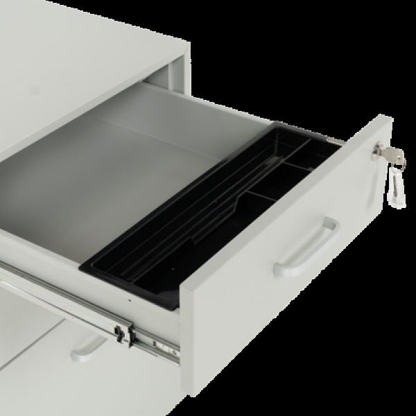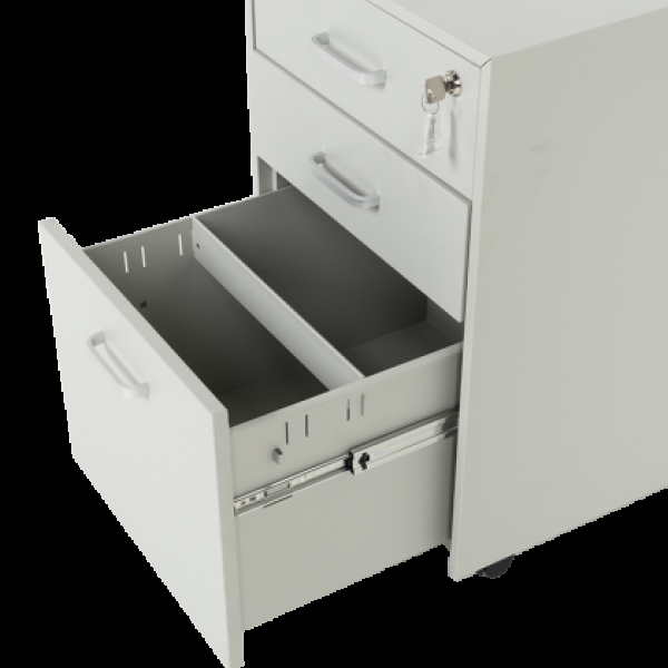 Офис контейнерът Carmen CR-1802 J SAND е метален шкаф тип кардекс с 3 чекмеджета с удобни дръжки и централно заключване. В основата на шкафа има колела за лесно придвижване при нужда. Контейнерът пристига сглобен, без необходимост от монтаж. Моделът е със система против накланяне, поради която чекмеджетата се отварят едно по едно (за да отворите едно, другите 2 трябва да са затворени).Пълна информация за размерите и характеристиките на модела ще намерите в таблицата в таб/поле "Техническа информация".