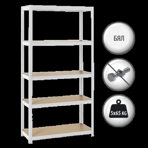 Метален стелаж Carmen CR-1027, 192x100x40 см, до 65 кг на рафт - бял