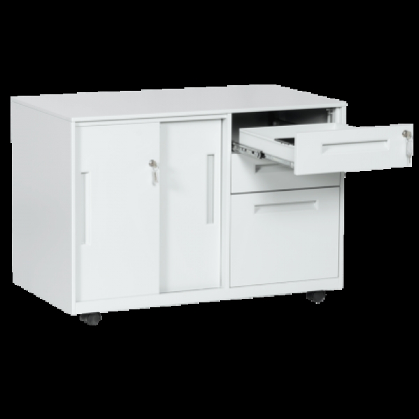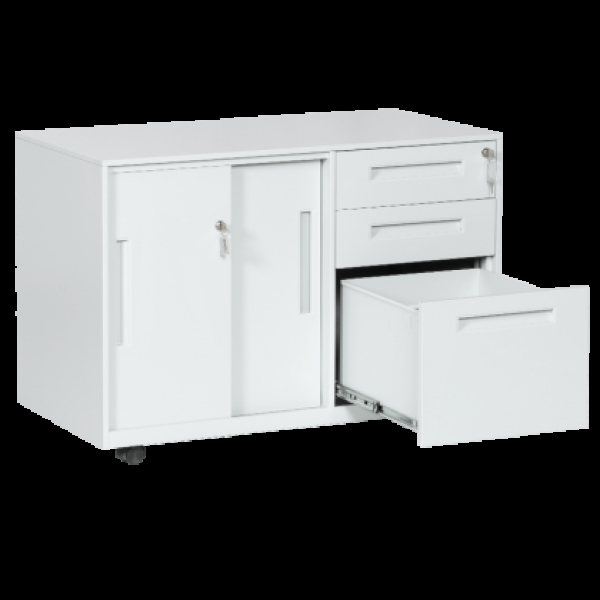 Кардекс Carmen CR-1851 K разполага с 2 чекмеджета и отделение с плъзгаща врата, като всяка зона е снабдена с отделно заключване с ключ. Вътрешният шкаф е оборудван с регулируеми рафтове, осигуряващи адаптивно пространство за документи и консумативи. Плъзгащата врата улеснява достъпа в тесни простран... →