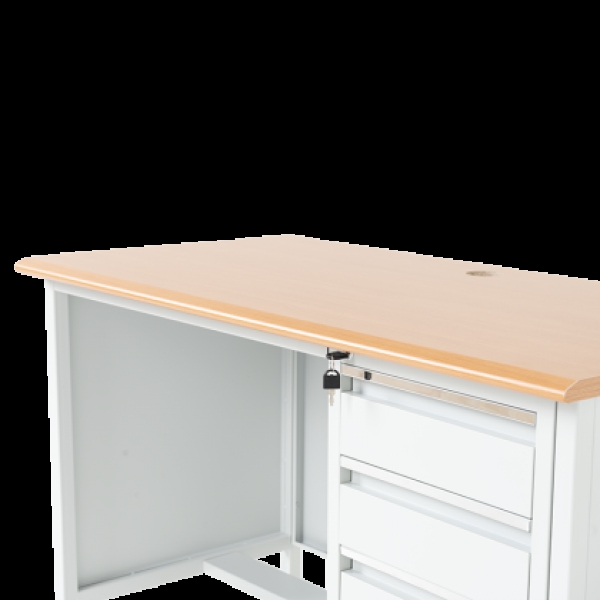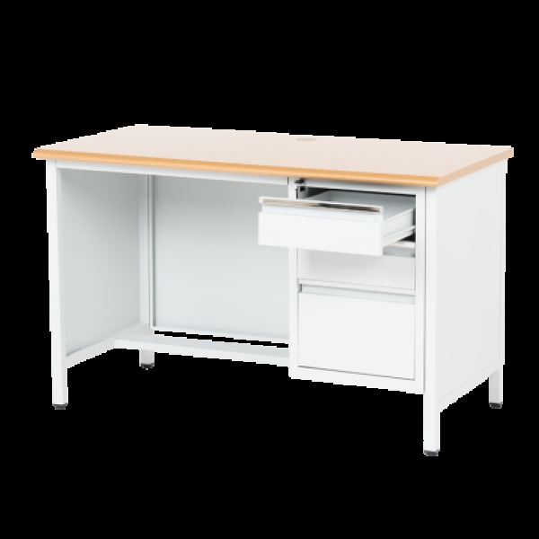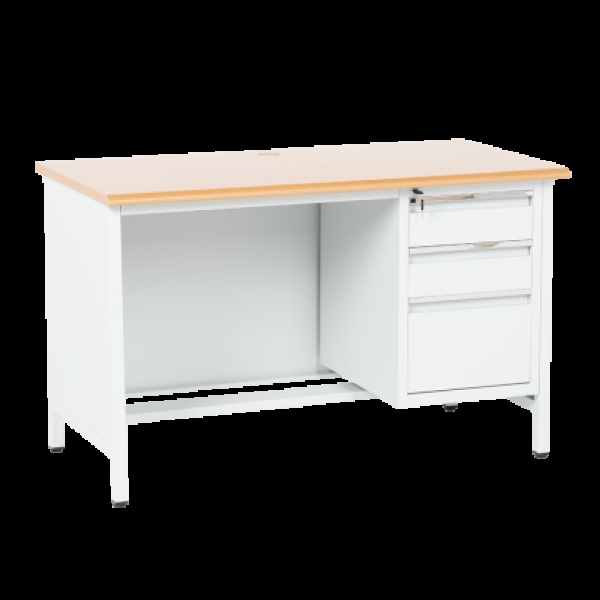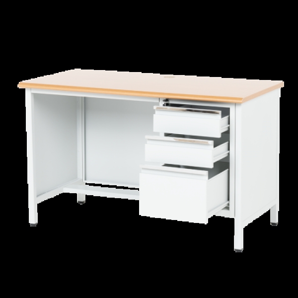 Метално бюро Carmen CR-1314 K е здраво и функционално решение за офис, работилница или учебна среда. Изработено от праховобоядисан метал с плот от МДФ (120х60 см), то предлага надеждност и удобство. Разполага с три чекмеджета със заключване за сигурно съхранение на документи и принадлежности. Пълна информация за размерите и характеристиките на модела ще намерите в таблицата в таб/поле 'Техническа информация'.